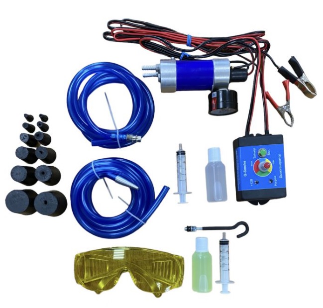 Генератор дыма G-Smoke FULL с таймером, регулятором плотности дыма, набором пробок №1 и возможностью обнаружения утечек методом ультрафиолетового исследования мест негерметичности, необходим при диагностике автомобиля, когда требуется обнаружить негерметичность в узлах и системах, влияющих на работу двигателя и электронного блока управления. К таким узлам и системам относятся: система впускного тракта воздуха, система выпуска выхлопных газов, система охлаждения и прочие.