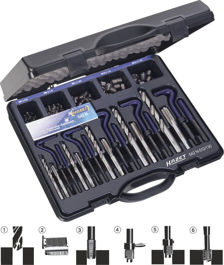 Приобрести Набор для ремонта и восстановления резьбы Hazet 842N-512/130 от компании Hazet (Германия) из раздела Наборы для ремонта и восстановления резьбы Hazet