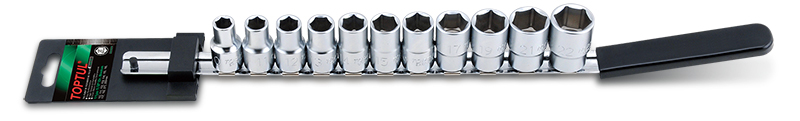 Набор головок 1/2" 6-гранных 10-22 мм, 11 предметов на планке TOPTUL