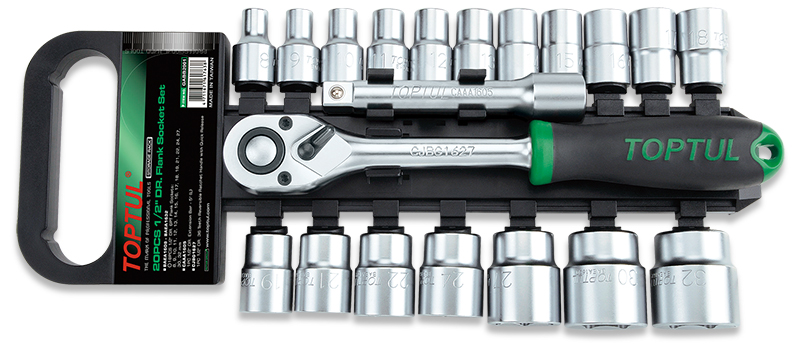 Приобрести Набор торцевых головок 1/2" 6-гр. 8-32 мм с трещоткой и удлинителем 20 пр. TOPTUL от компании Toptul (Тайвань) из раздела Наборы головок по цене 5 996 рублей.